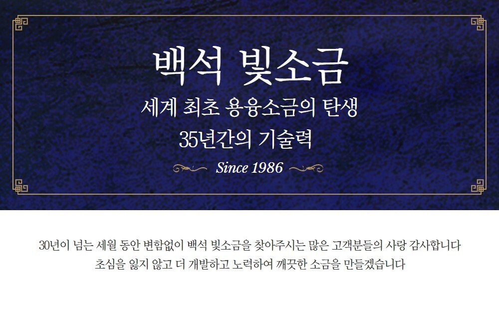 본 제품은 1,000℃ 고열에서 200시간 동안 녹여각종 불순물을 제거한 깨끗한 소금입니다. (200시간은 8일 8시간 동안 녹인 시간입니다.)